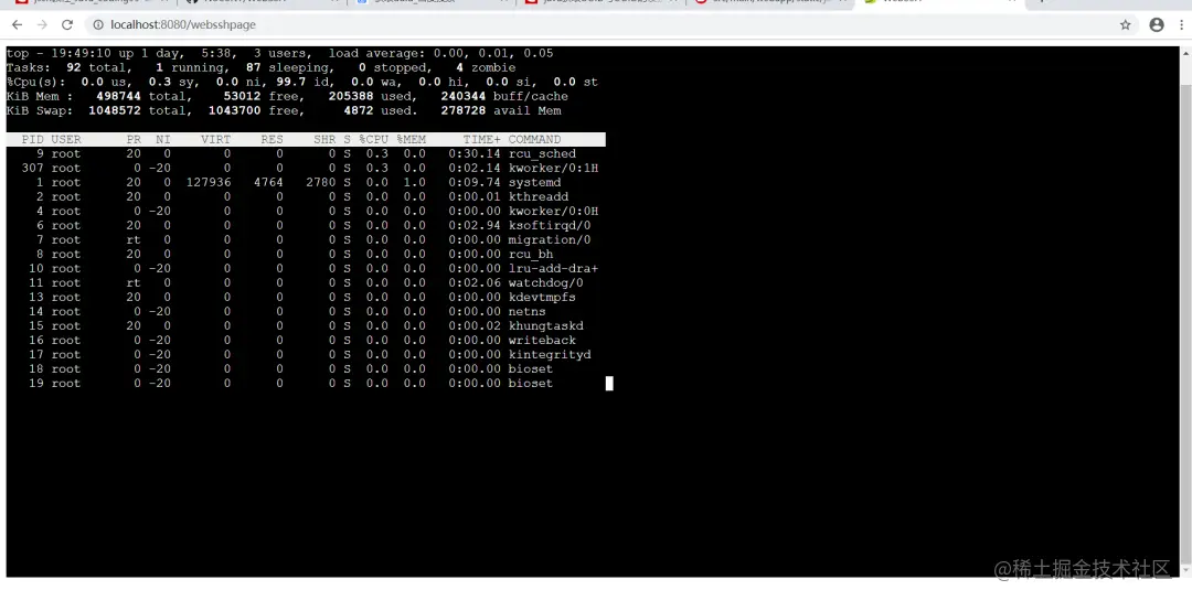 最终测试,页面就是下面这个样子:可以看到页面已经出现了类似与shell的样式,那就根据这个继续深入,实现一个webssh。