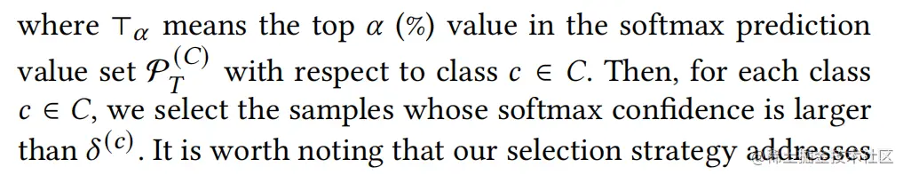 这个公式的我的解释: 就是每一个类别,选择他们的softmax之后的预测值的前百分之K个。就是每一个类别会选择不同的阈值,保证每个类别都balnace一些