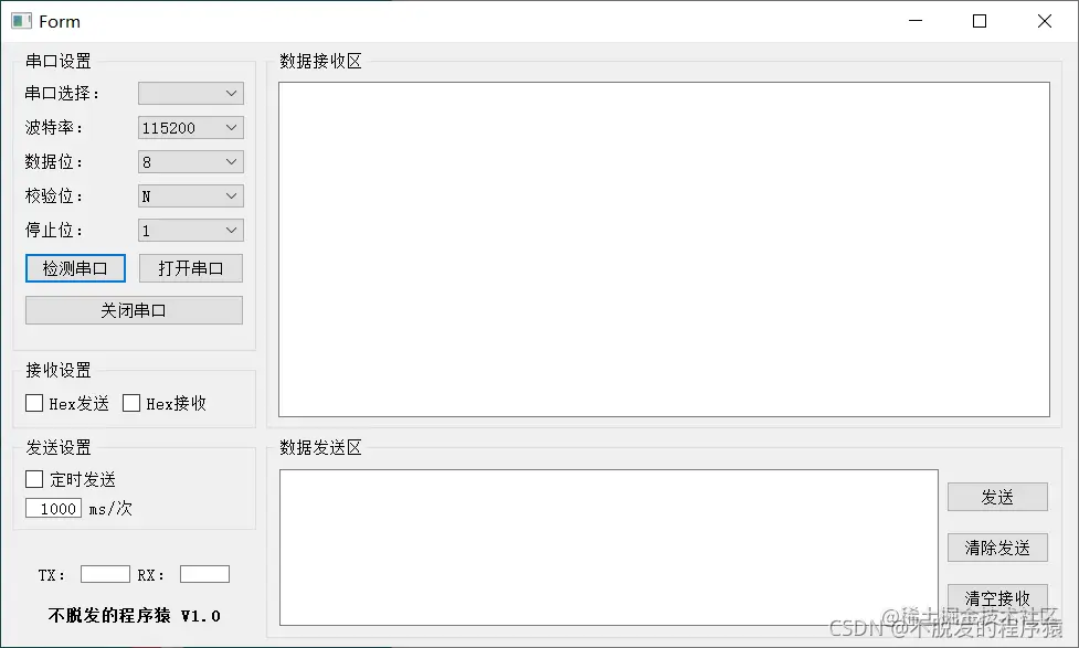 运行我设计的串口调试助手UI,效果如下所示: