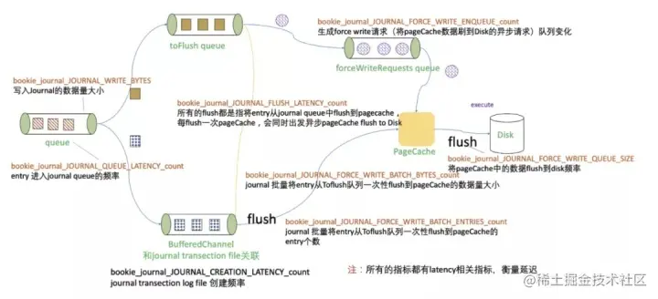 BookKeeper Request IO 请求流程使用以下监控指标。
