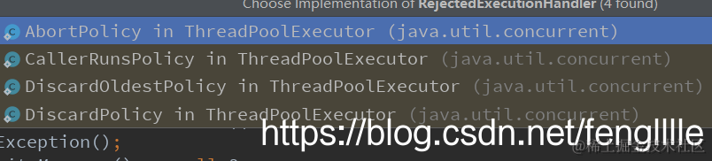 自定义拒绝策略实现:实现RejectedExecutionHandler接口;覆写rejectedExecution()方法