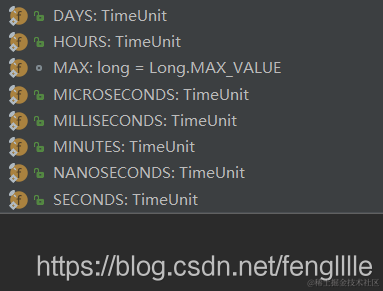 TimeUnit 枚举值有:DAYS、HOURS、MINUTES、SECONDS、MILLISECONDS(毫秒)、MICROSECONDS(微秒)、NANOSECONDS(纳秒);