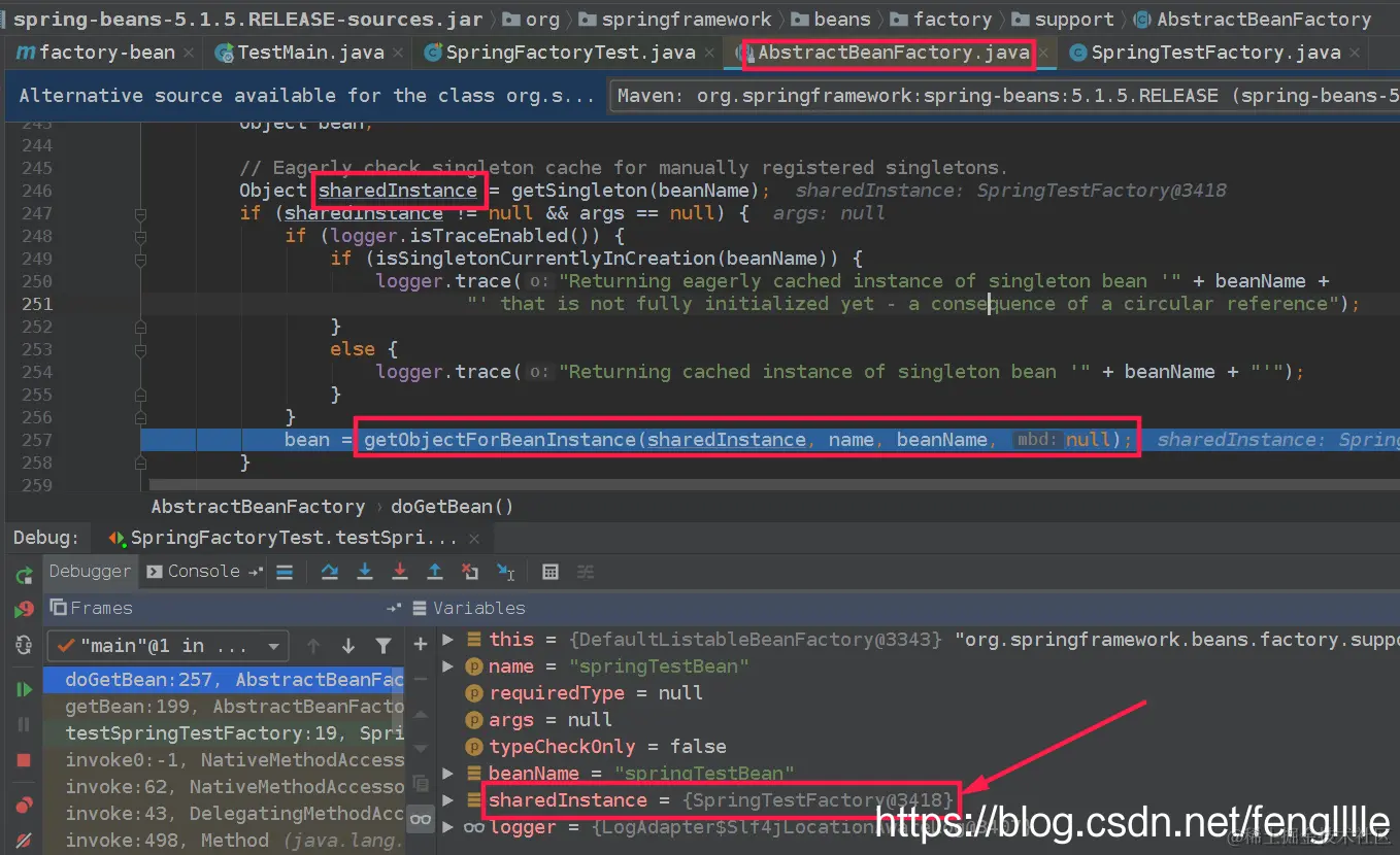 getObjectForBeanInstance(sharedInstance, name, beanName, null)