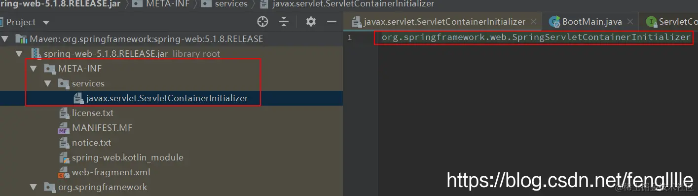 必须配置放在classpath的META-INF/service下,JDK SPI的方式;在ServletContainerInitializer也叫SCI。