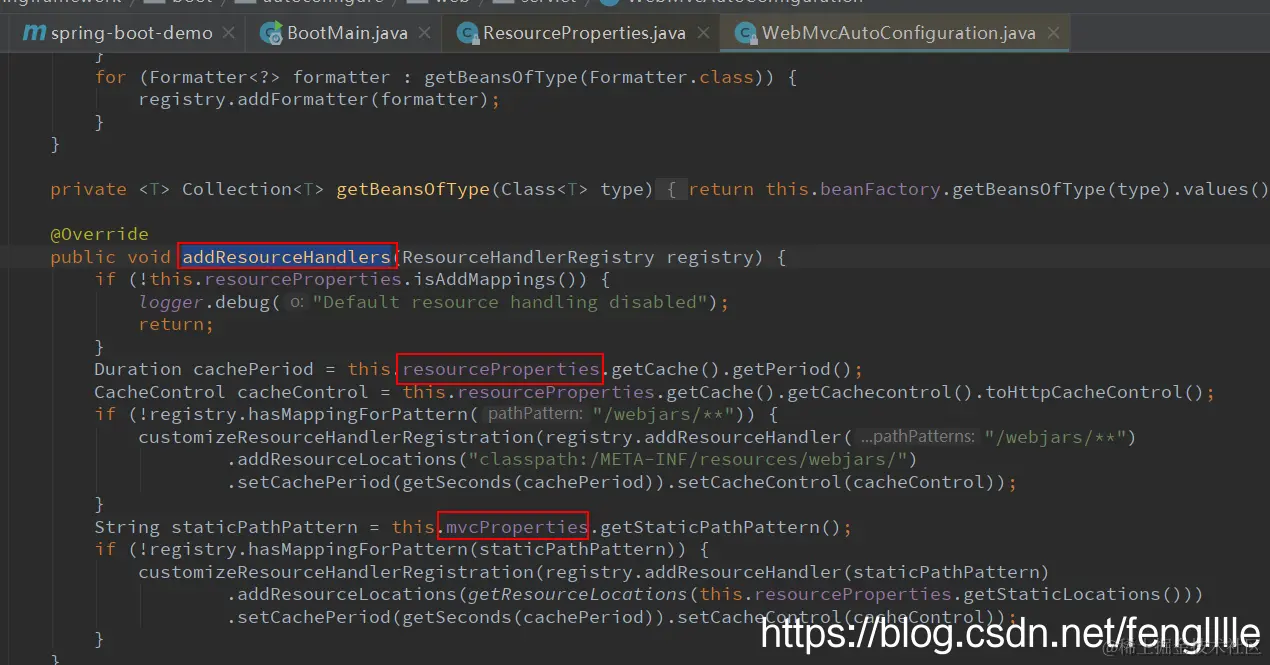 常用的自定义spring.mvc.staticPathPattern = "/**",默认/**,配置pattern,url的路径参数