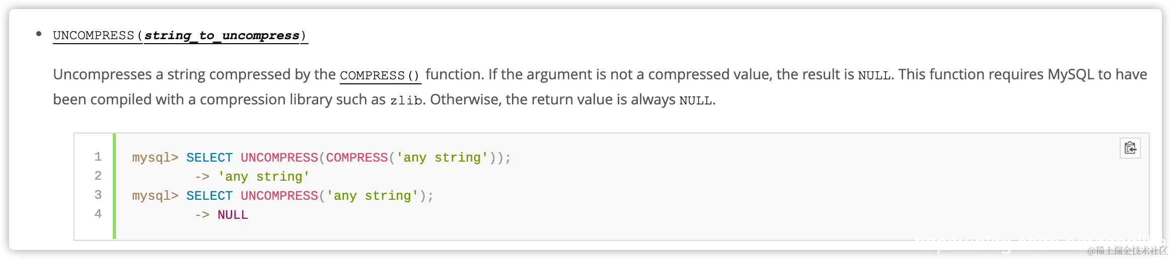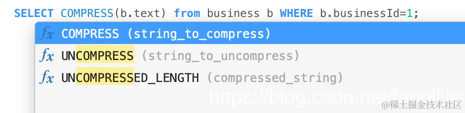 可以看出MySQL有3个与压缩相关的函数,试一下