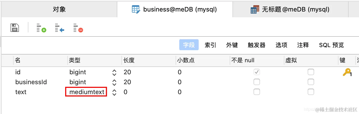 模拟MySQL数据库,可以看到有个text字段,然而在开发时以前存储了json字符串,大小居然超过2M,必须使用mediumtext才能存储,而且经常更新json的部分字段,MySQL本身是关系型数据库,应该做成关联表存储,但是已经上线的系统必须及时优化,先满足现有的性能要求。