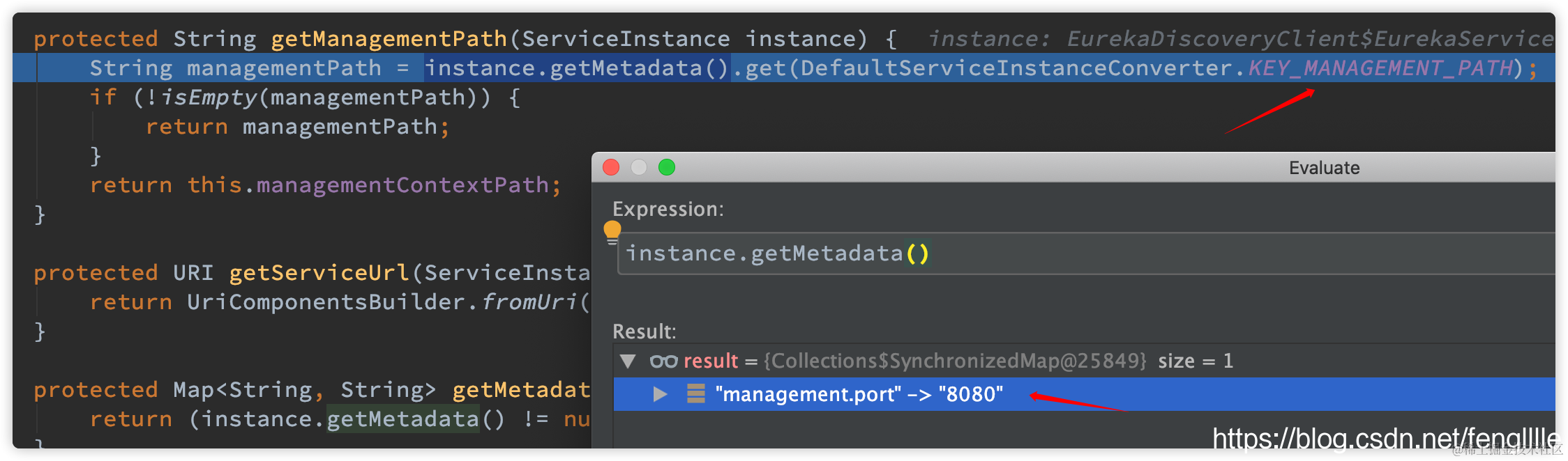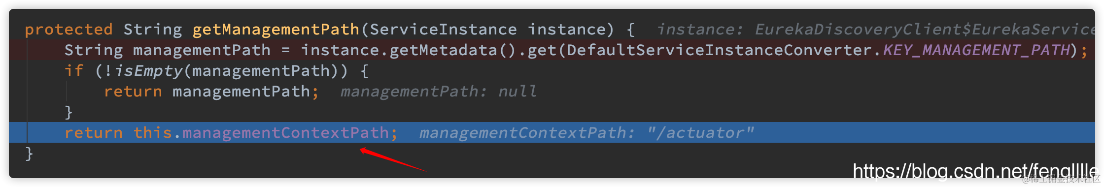 String managementPath = instance.getMetadata().get(DefaultServiceInstanceConverter.KEY_MANAGEMENT_PATH);