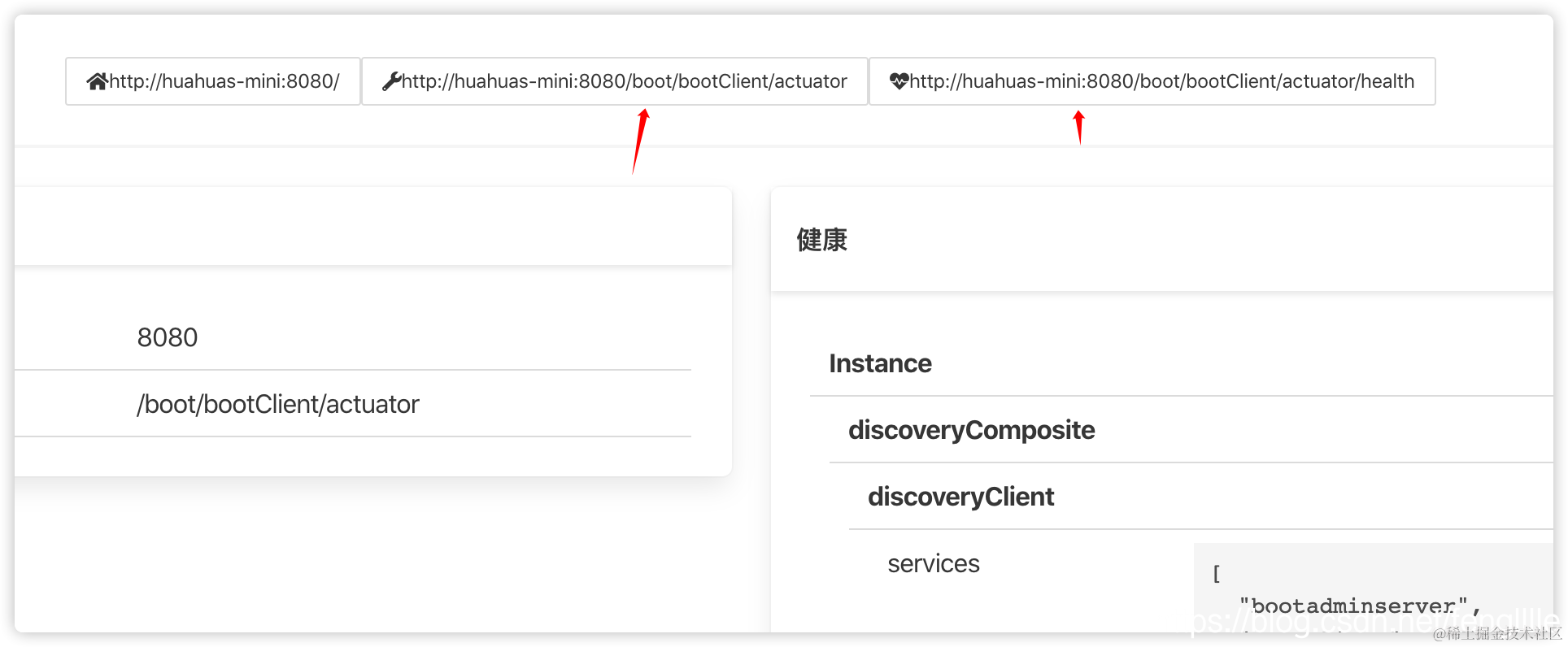前面是拼接http://hostname:port/;关键在于path,就是admin识别的client暴露的actuator接口信息URL