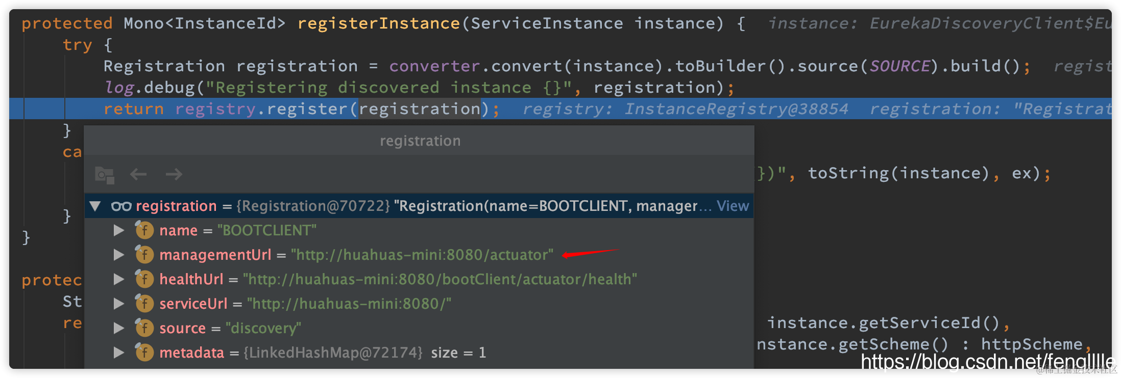 这里面有注册信息的拼接,getHealthUrl(instance)与getManagementUrl(instance)