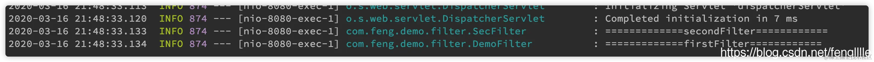 笔者这里写了2个filter,打印日志,说明filter拦截成功
