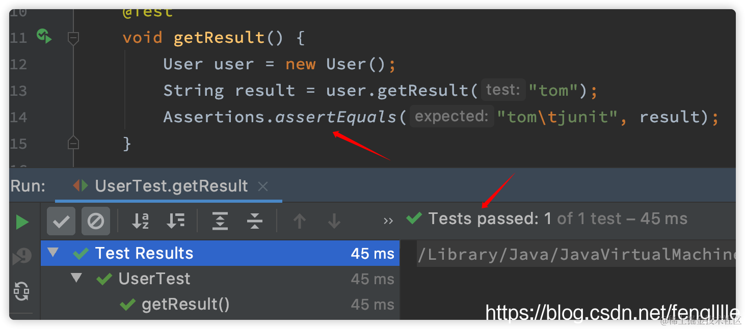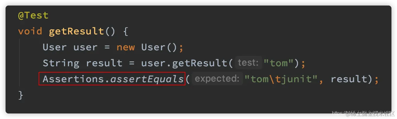 Assertions.assertThat(result).isEqualTo("tom\tjunit", result);