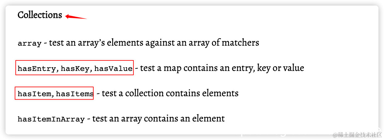 官方文档:hamcrest.org/JavaHamcres…;非常详细了,API就不介绍了,etg