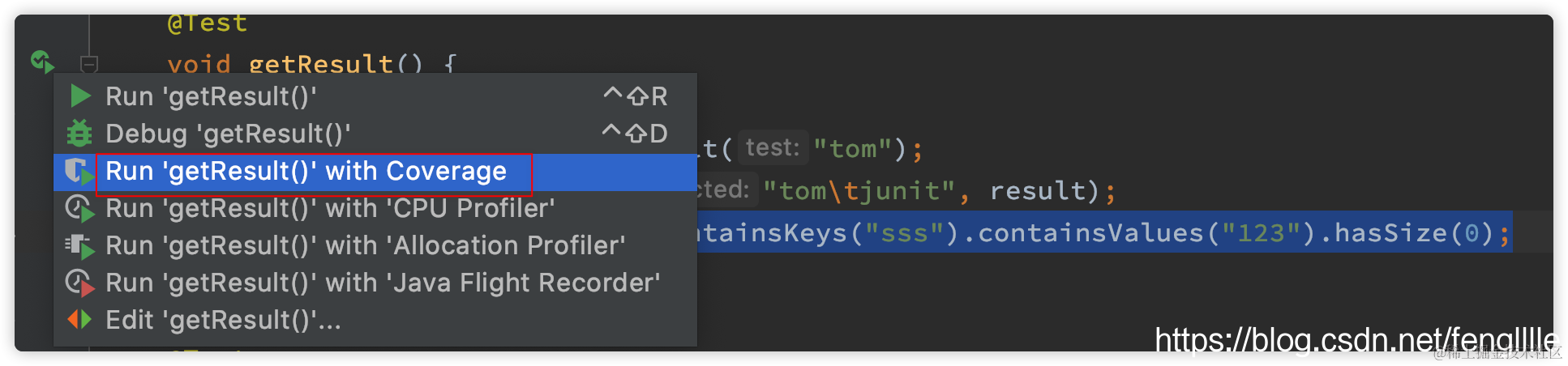 比如上面的单元测试,其实只要getResult方法覆盖就可以了,get set方法一般不需要单元测试。完善一下