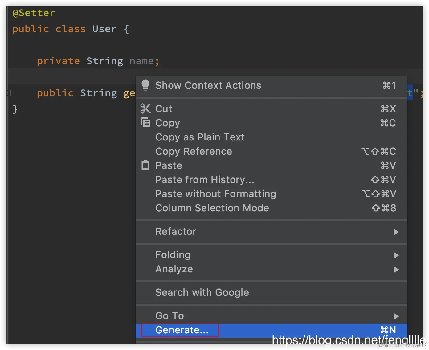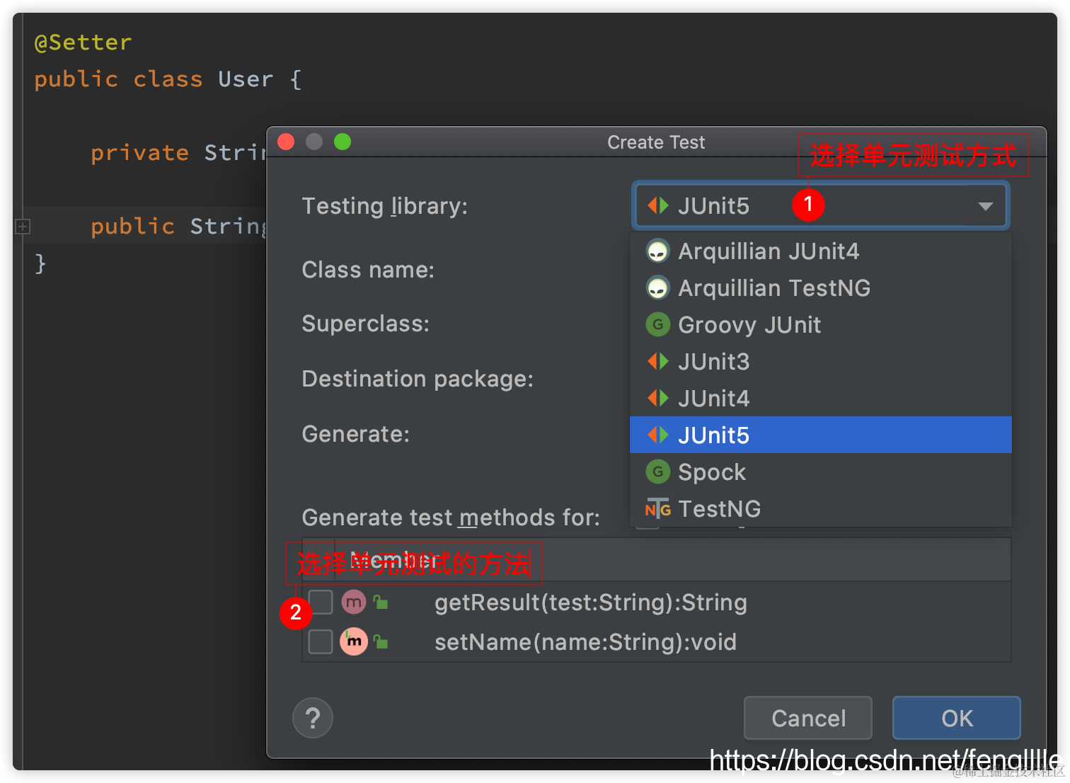 比如我有一个User类,当然这个类一般不用验证写单元测试(这里仅说一下单元测试方式),单元测试需要花费一定的时间,一般保证核心与复杂功能有覆盖即可。