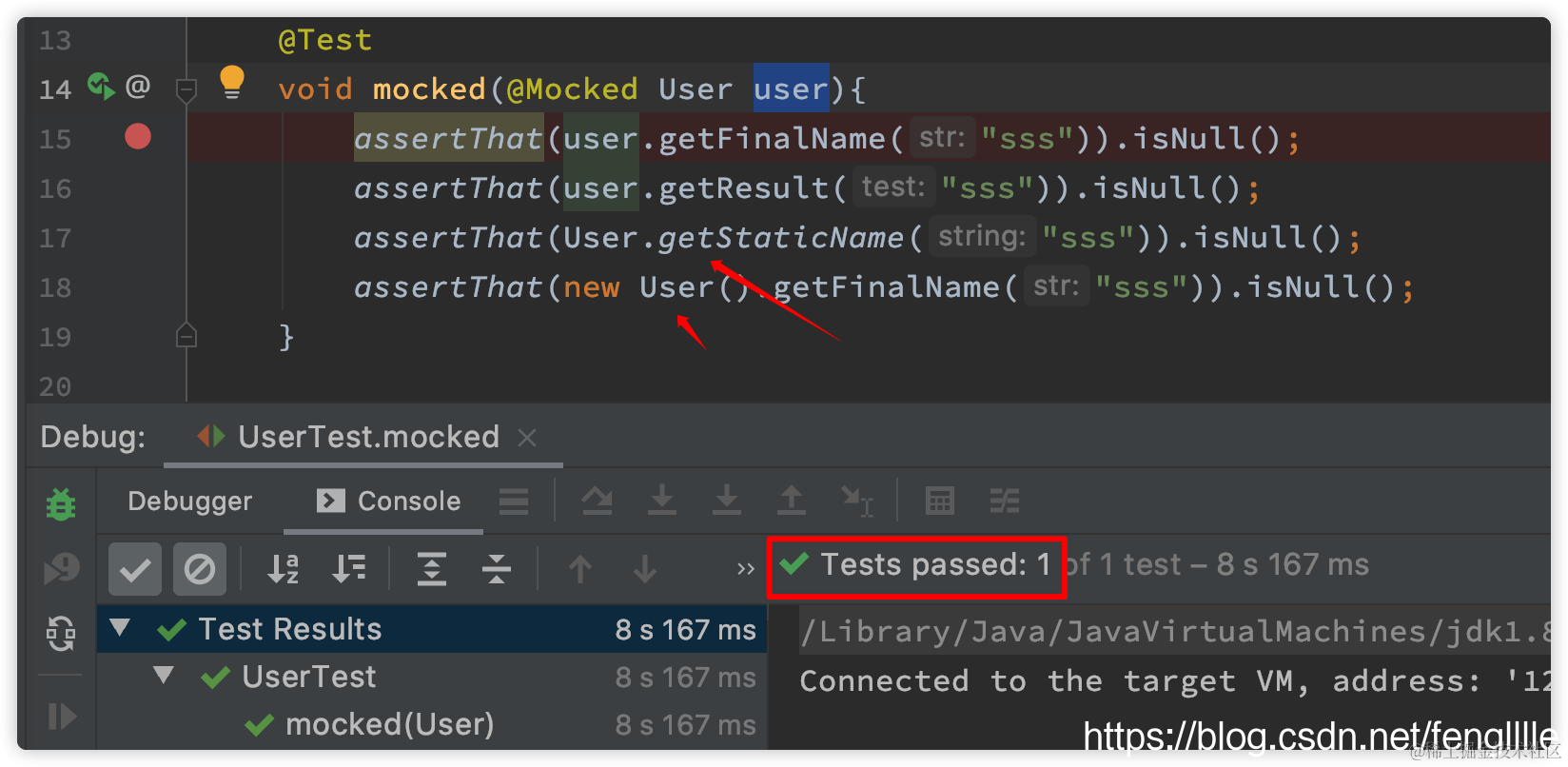 继续使用上文的User作为需要测试的类。