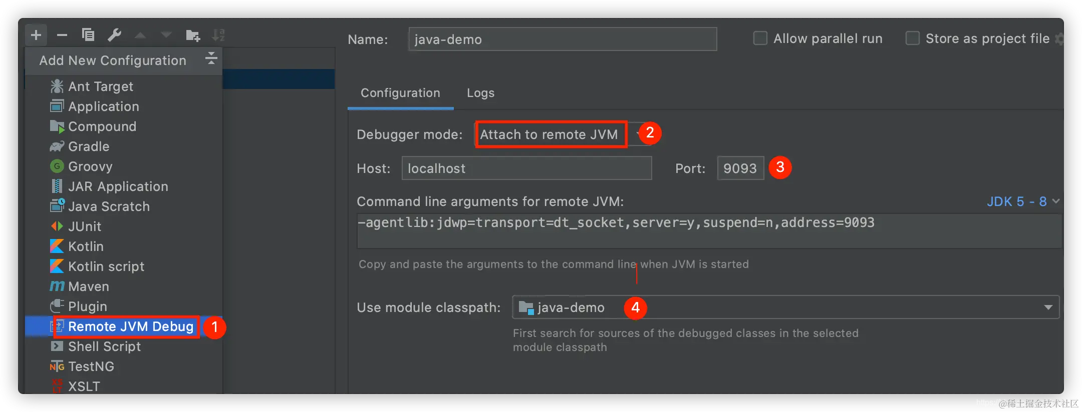 其实这些功能都是JVM提供的,类似Spring Boot与Tomcat或者其他Java应用也是JVM在后面起作用,这些都是封装JVM启动参数来达到调试的原理。IDE工具亦是如此,只是图形化做得很好。另外小技巧:当如果有防火墙时,可以临时使用8080这类已经开通的作为调试端口,用其他端口启动应用,调试结束就换参数即可,避免临时开墙的困扰。