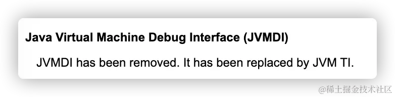 可以看到笔者是jdk8的文档,JVMDI接口已经移除了,那么现在使用的是JVMTI