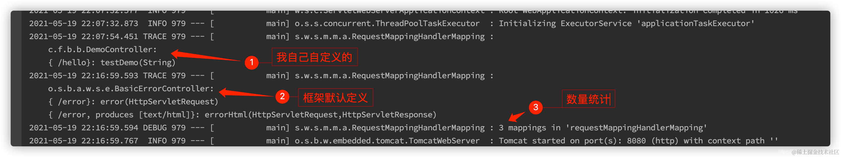 其实Spring还是会打印mapping信息,只是格式变了,另外地方变了,最主要的是日志级别变了,变为trace级别。