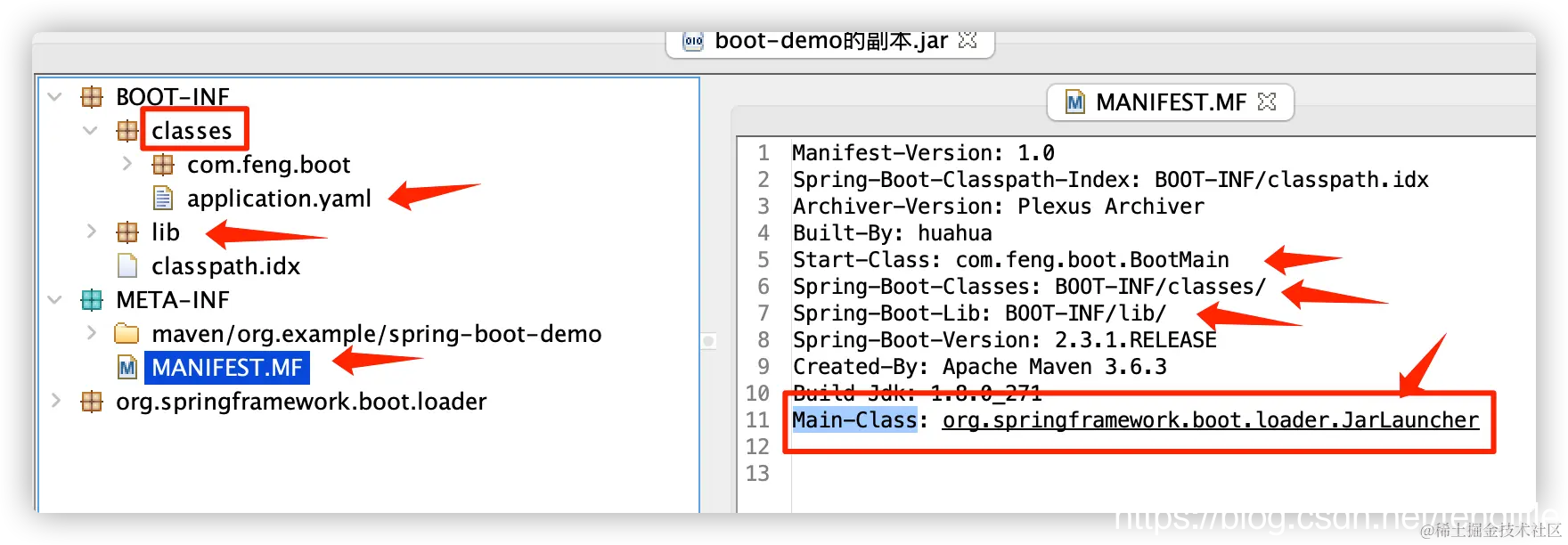 通过META-INF.MANIFEST.MF获取到,Spring包装的main的类