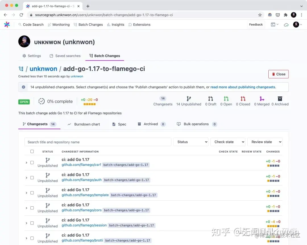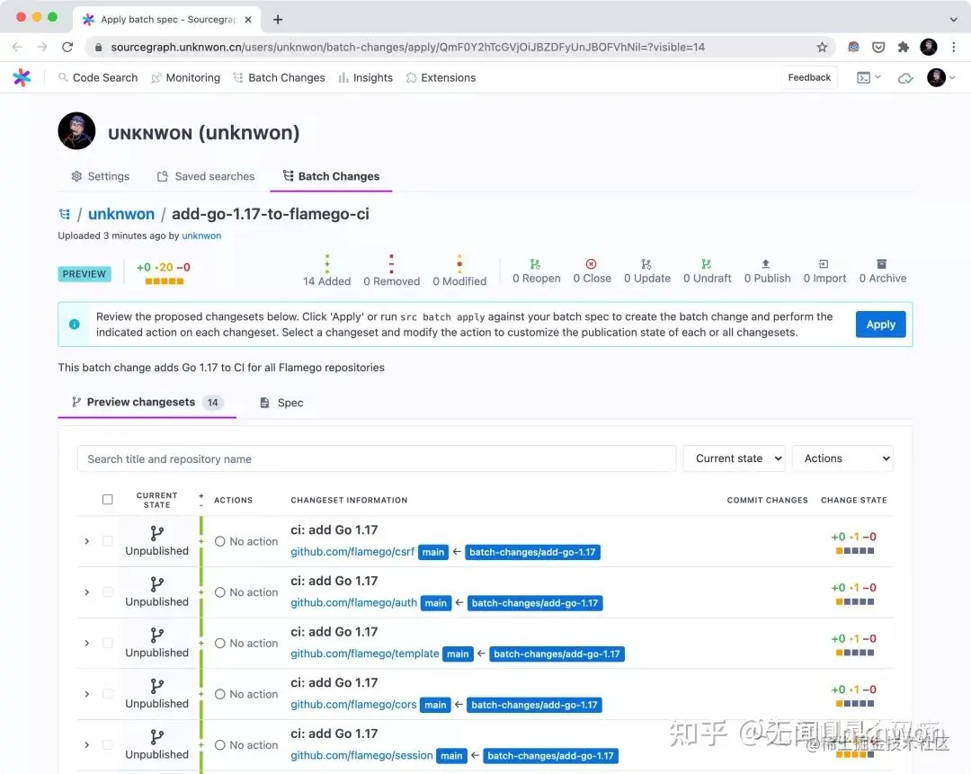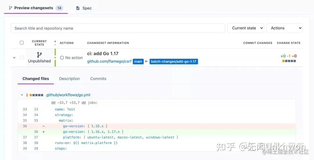 $ src batch preview -f add-go-1.17-to-flamego-ci.batch.yaml