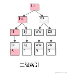 除了主键索引外,其他的索引都称之为二级索引,或非聚集索引,同样也是一颗 B+ 树索引,它和主键索引不同的是叶子节点存放的是索引键值、主键值。