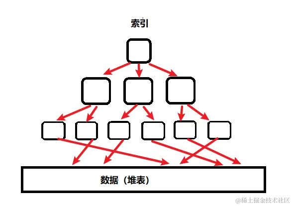 如上图,堆表中的数据和索引是分开存储的,索引有序而数据是无序的,索引的叶子节点存的是数据在堆表中的地址。堆表中数据发生变更,其位置也会变,导致索引中的地址都需要更新,所以很影响性能。