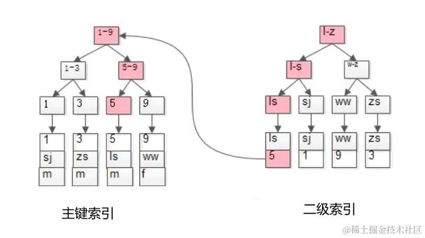 主键索引和非主键索引的示意图如下: