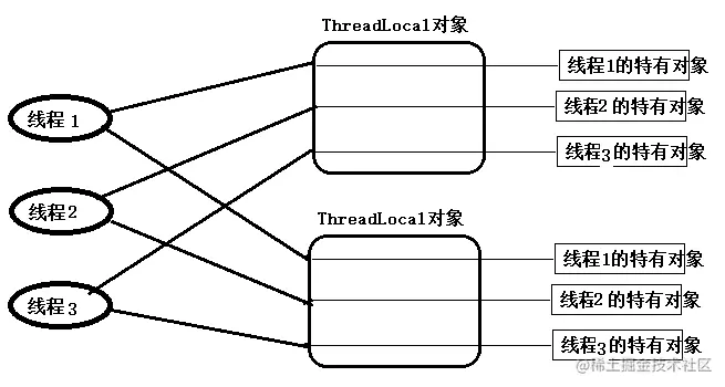 ThreadLocal实例为每个访问它的线程都关联了一个该线程特有的对象, ThreadLocal实例都有当前线程与特有实例之间的一个关联。