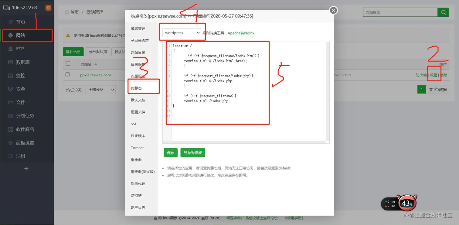 前言:在宝塔上面安装了wordpress(以下简称wp),在wp里更改固定链接,网站的页面出现404。