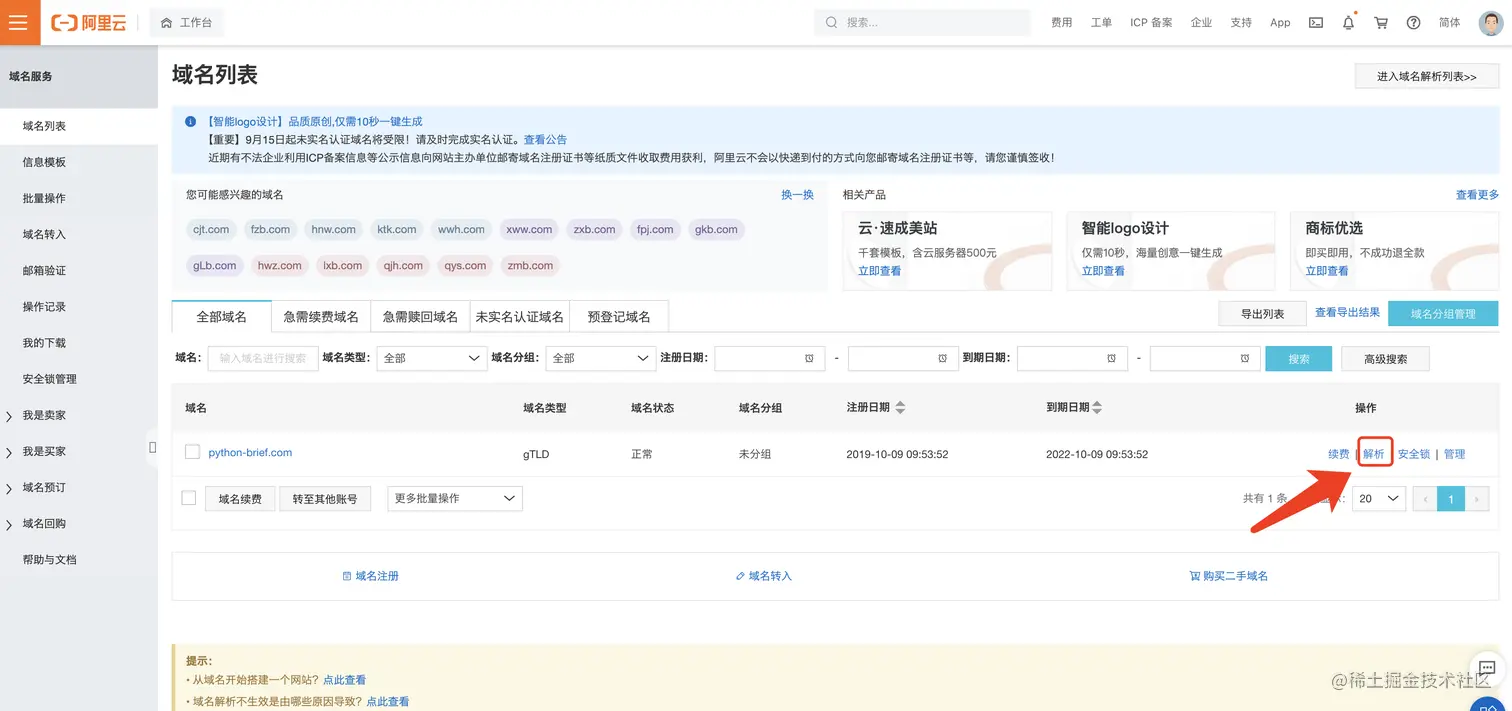 需要你有一个域名,可以在阿里云或者腾讯云购买,我之前已经购买过,如果要购买可以点击这里优惠购买。