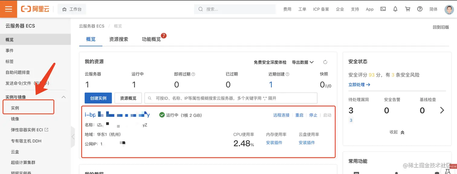 首先我们登录阿里云后台,进入ECS服务器管理后台,大家可以直接通过下面链接登录即可(前提是你已经有了一个云服务器哦~)。
