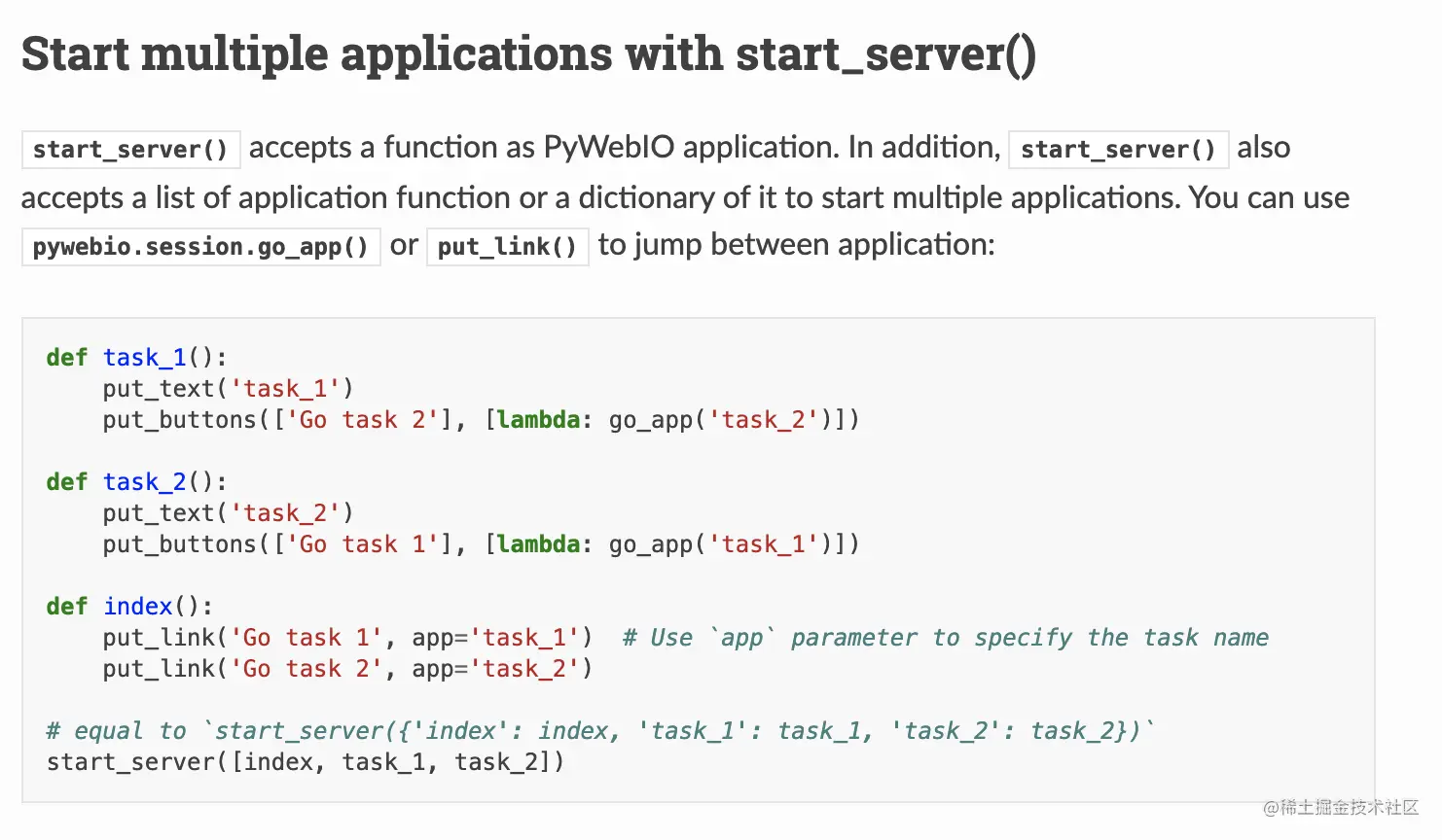 第三个页面就是我们的首页了,pywebio中页面跳转支持两种方式,如下图所示,一种是pywebio.session.go_app()一种是put_link(),我选择的是put_link(),链接文案设置灵活一点。