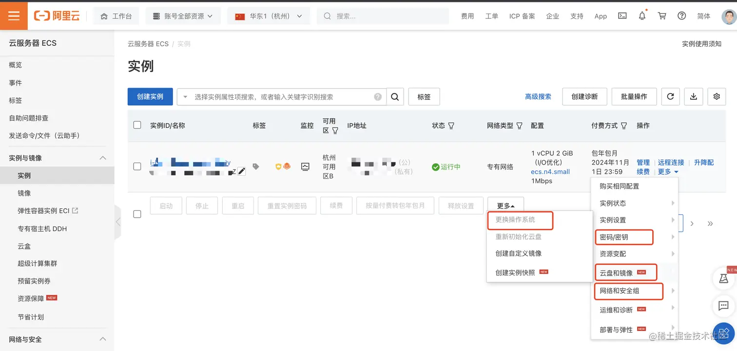 - 云盘和镜像:在这里可以重置系统、自定义镜像等