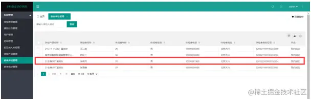 如图3.12所示,用户在体检系统预约体检成功后,就会把用户申请体检的记录传到乡村医生的后台管理系统上,医生登录后台管理系统,选择患者体检管理,就会查看到申请体检的记录。医生会根据对应的体检产品、体检人员做出安排,下乡给患者体检。
