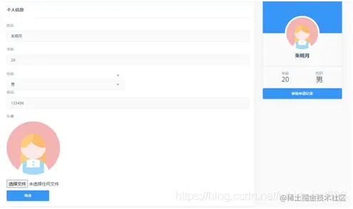 如图3.8所示,为个人信息查看编辑页面,用户可随时修改自己的个人信息。完善自己的体检记录。同时还有一个体检申请记录,点击体检申请记录,就可以查看用户预约了哪些体检,是否申请预约成功。