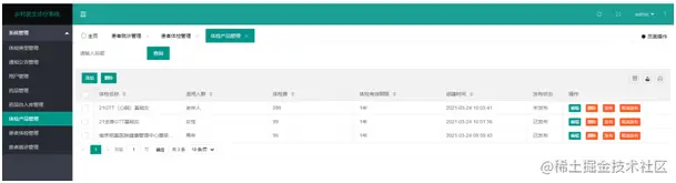 如图3.13所示,医生登录后台管理系统后,进入到体检产品管理模块,可以查看有哪些产品,对应的体检产品会显示到体检平台首页供用户选择,医生可以对体检产品进行新增、编辑、删除、发布等。如果取消发布,用户在前端平台是看不到的。