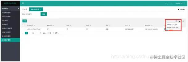 如图3.21、图3.22所示,在患者就诊管理模块,点击导出图标,选择导出成为Csv文件或者Excel文件,点击选择,即可成功导出为相应的文件格式。导出后可以进行上交卫生院等操作。