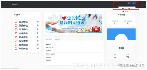 如图3.2所示,当用户注册成功或者已有账号后,可以进行登录,进入体检系统主页面。
