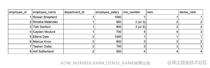 RANK/DENSE_RANK/ROW_NUMBER:它们通过排序特定列来为每行分配一个排名。如果给出了任何分区列,则行将在其所属的分区组中排名。