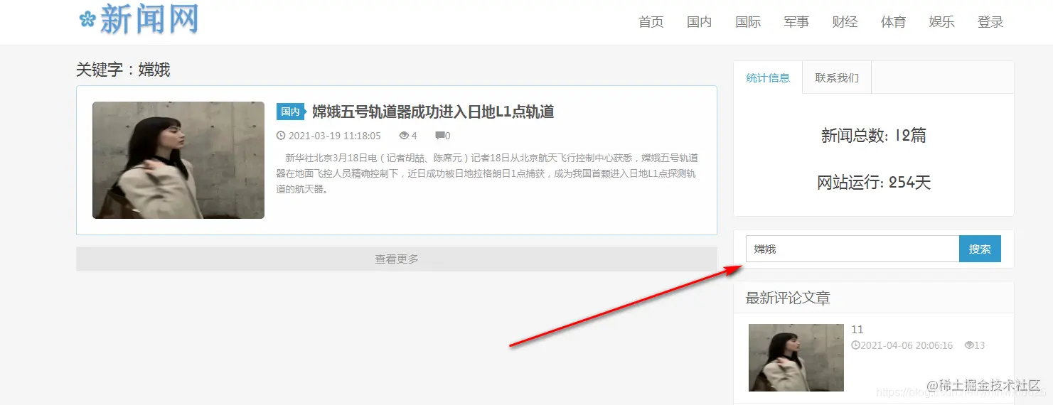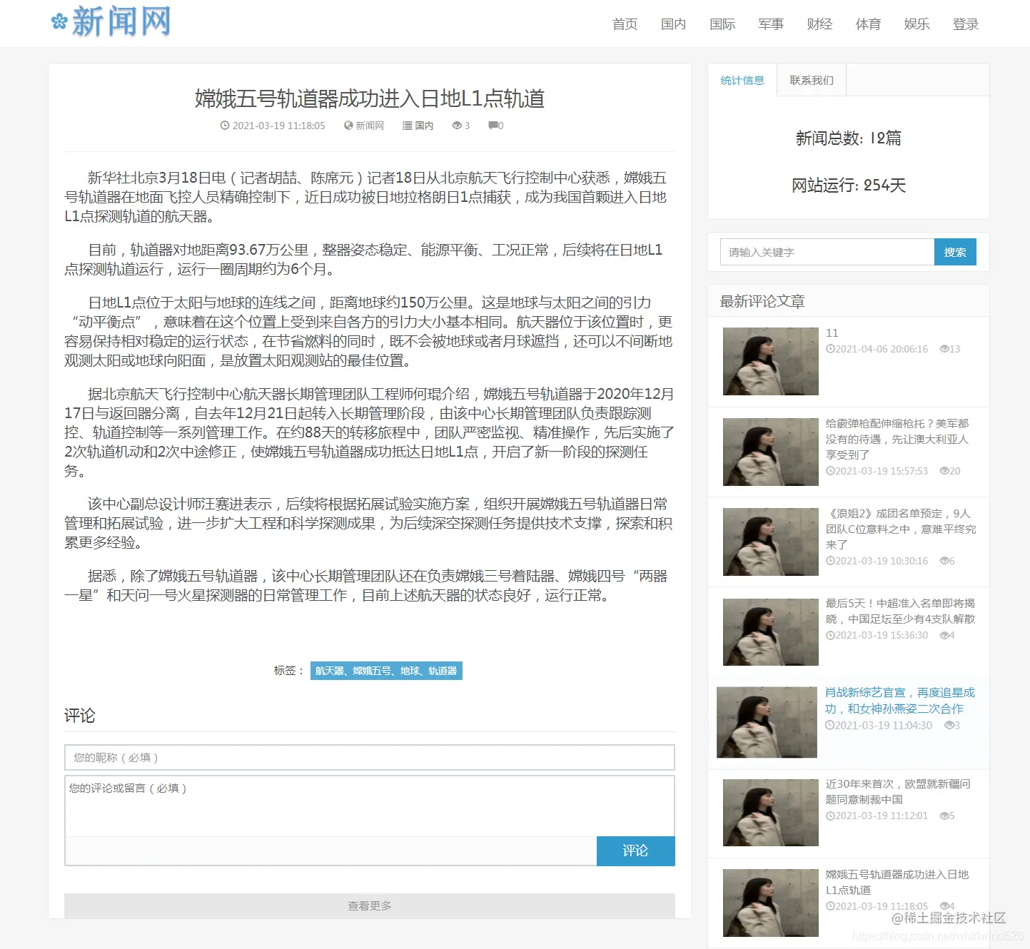 新闻详情展示:可以登陆后在此进行新闻信息评论
