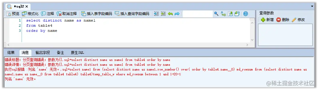 这种情况,一般是在使用 select distinct 时,字段使用了别名,并且别名和原字段名称不一致的时候。