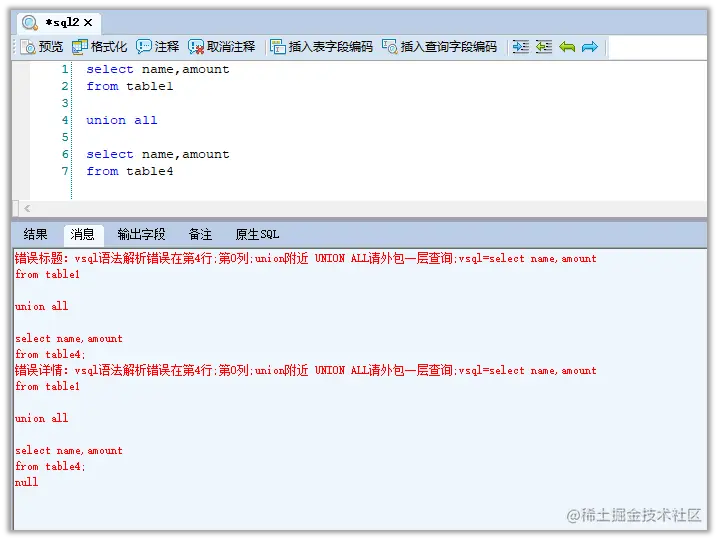 Q2:VSQL在使用 union all 时报错怎么办?