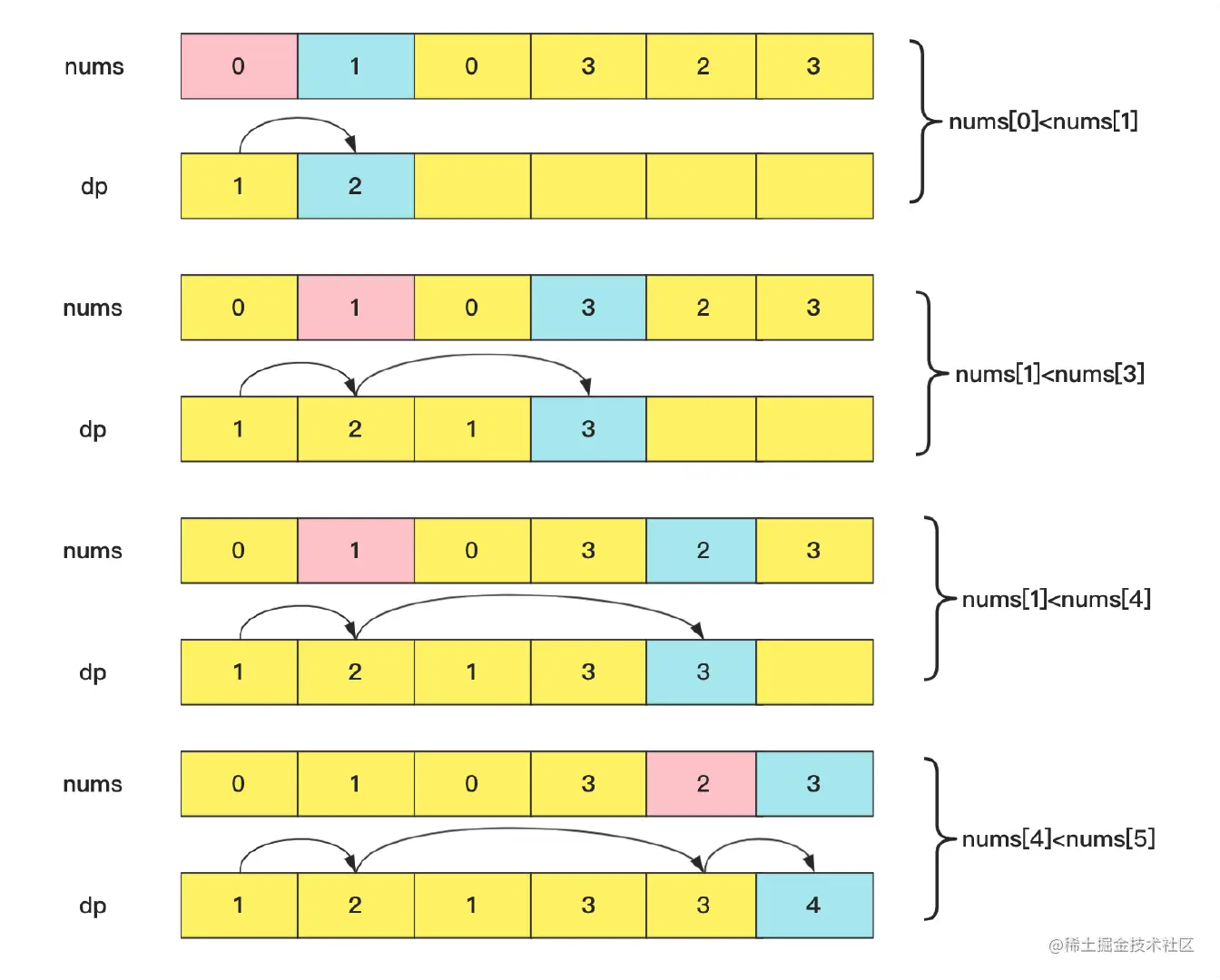 if(nums[j]<nums[i]&&dp[j]>max){