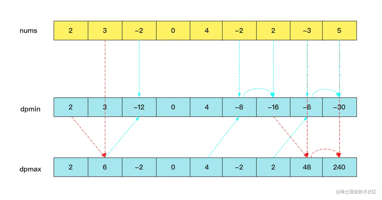 dpmin[i]=min(dpmax[i-1]*nums[i],dpmin[i-1]*nums[i],nums[i])