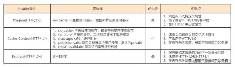 max-age 指定设置缓存最大的有效时间(单位为s) public 指定响应会被缓存,并且在多用户间共享 private 响应只作为私有的缓存,不能在用户间共享 no-cache 指定不缓存响应,表明资源不进行缓存 no-store 绝对禁止缓存