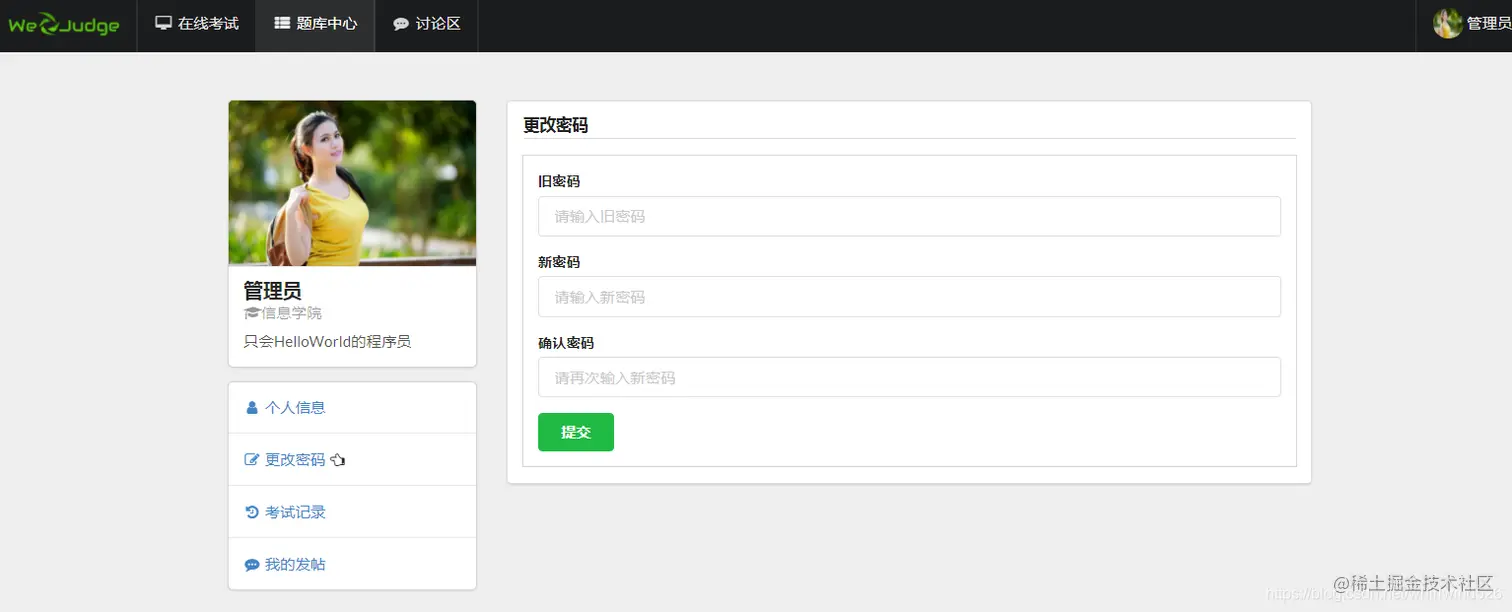 学生:进入系统后可以参加考试,查看自己的考试成绩,可以查看自己所属学科的试题等。
