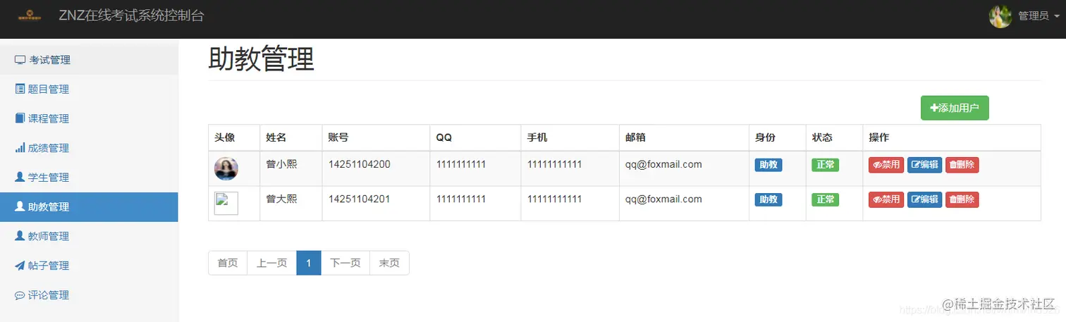 以管理员身份进入演示所有的功能展示,实际项目可以以学生、教师、助教进入系统后实施不同的操作。