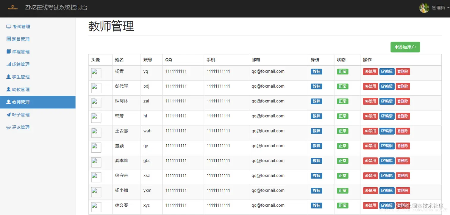 老师:主要进入系统后可以管理自己所担任课程的试题、考试、课程、批改试卷等操作