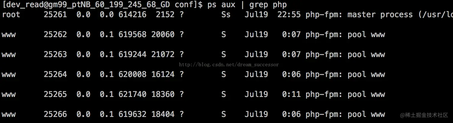 可以看到php-fpm的主进程是root,其余子进程均是www的用户